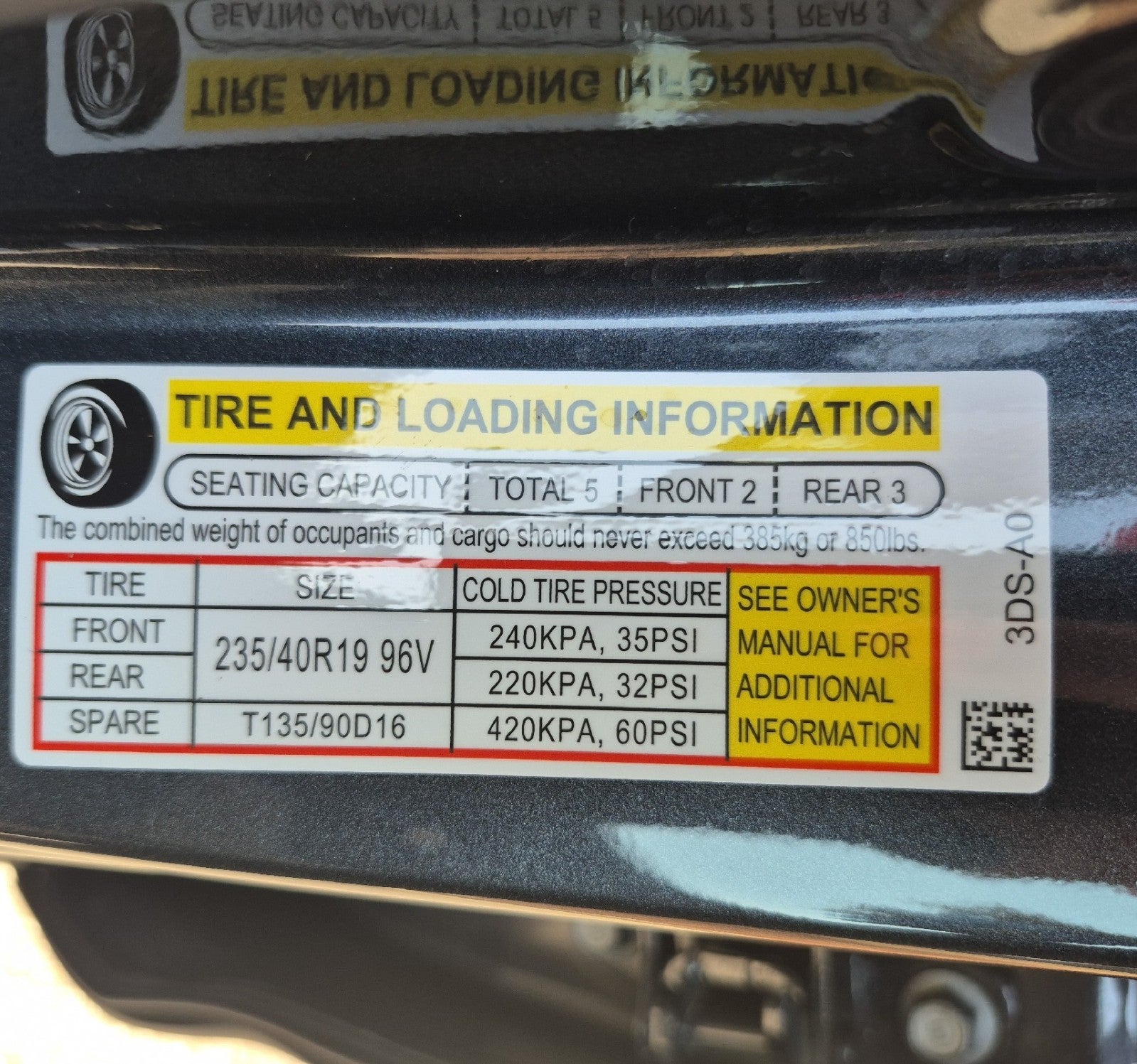 - Tires: 235/40R19 96V AS
