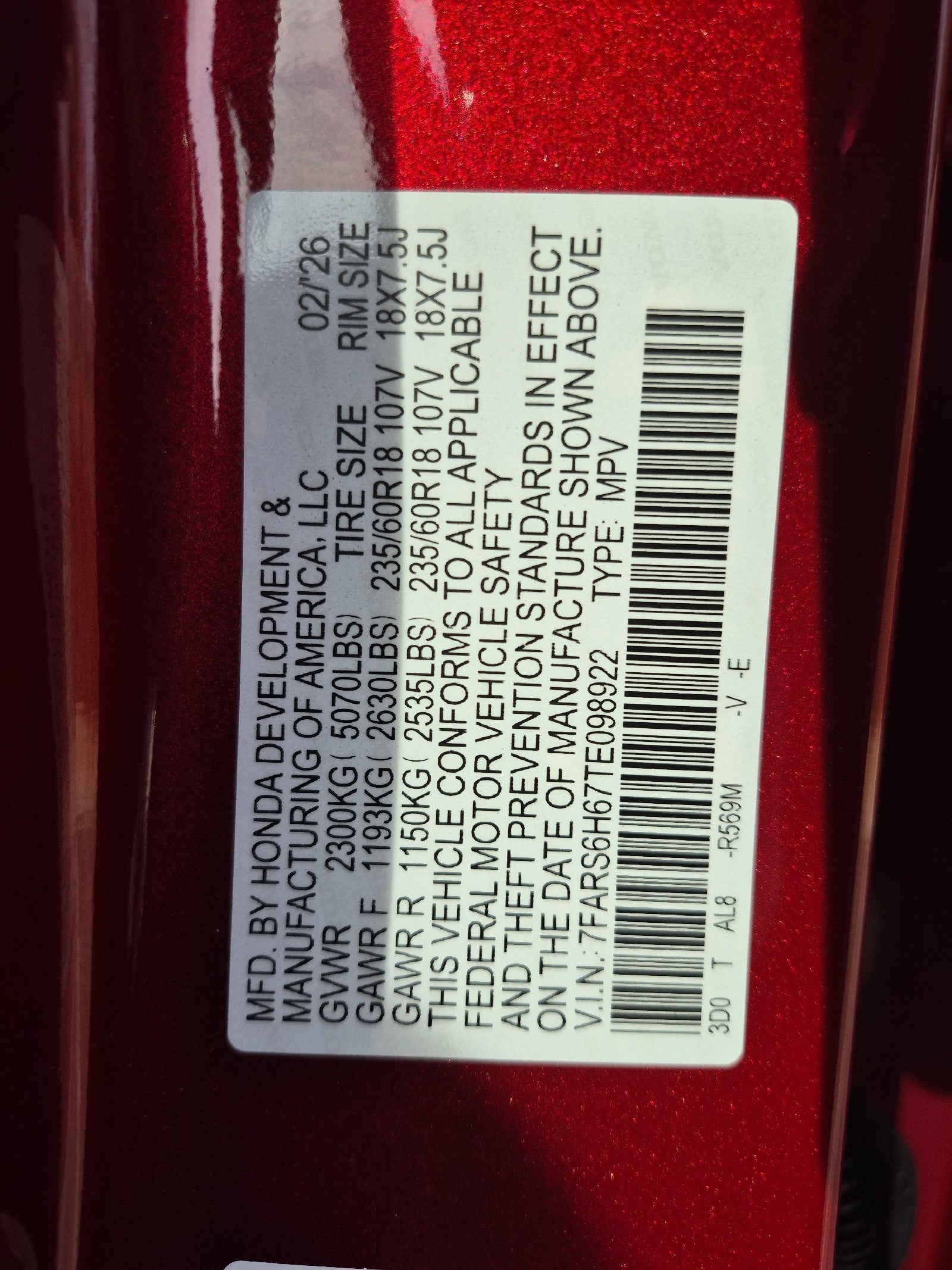 - Front Tire Size: P235/60VR18