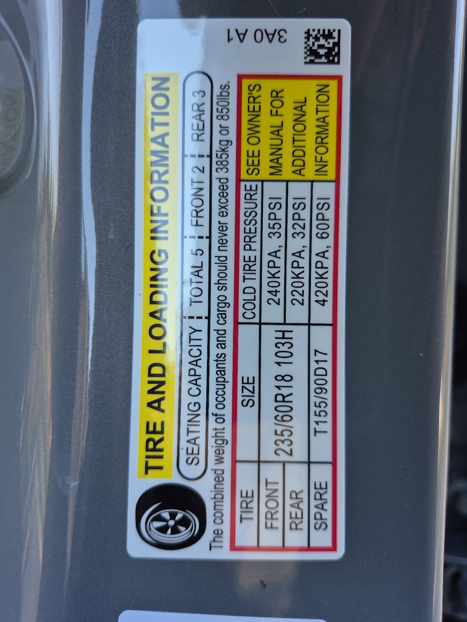 - Front Tire Size: P235/60HR18