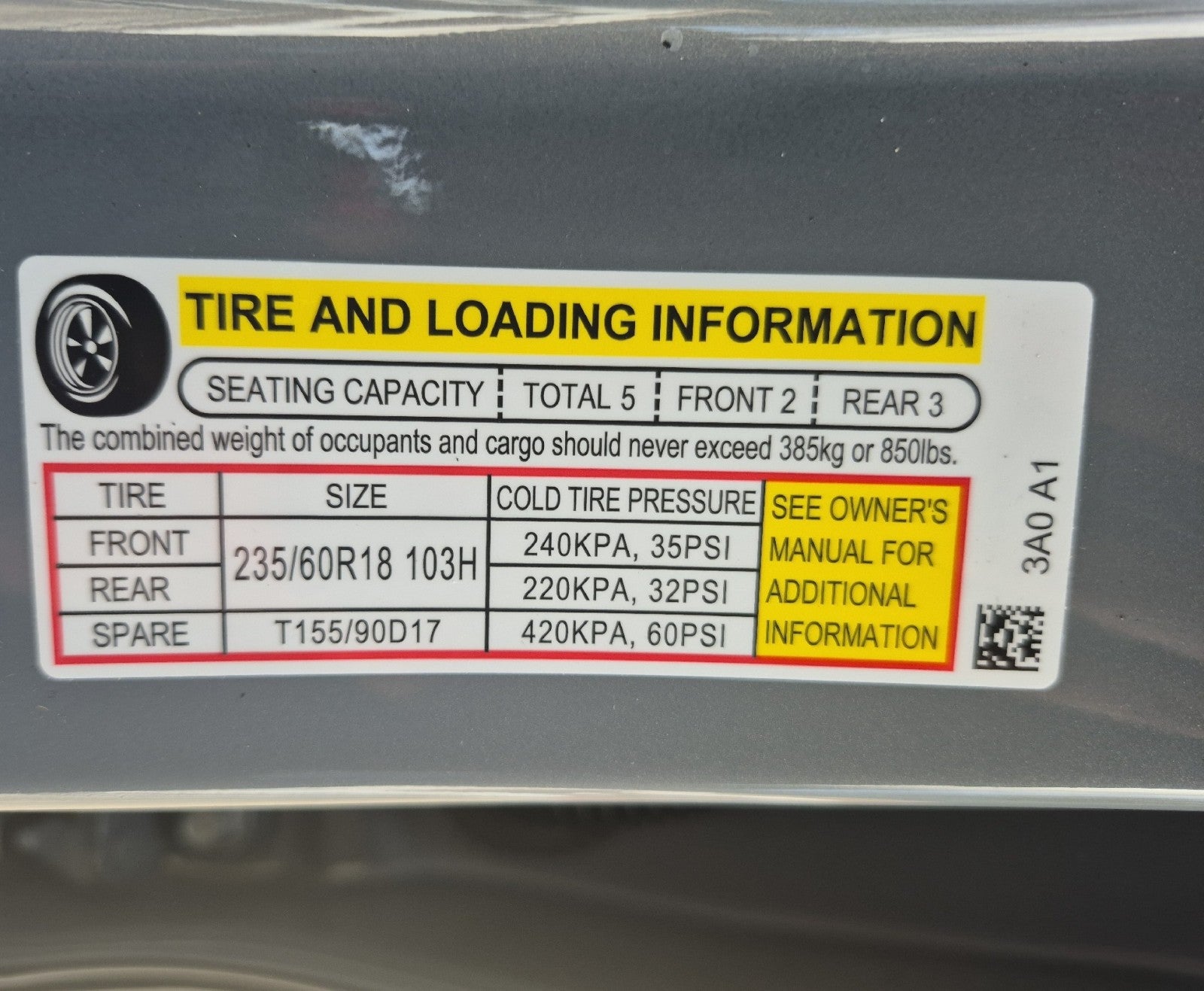 - Front Tire Size: P235/60HR18