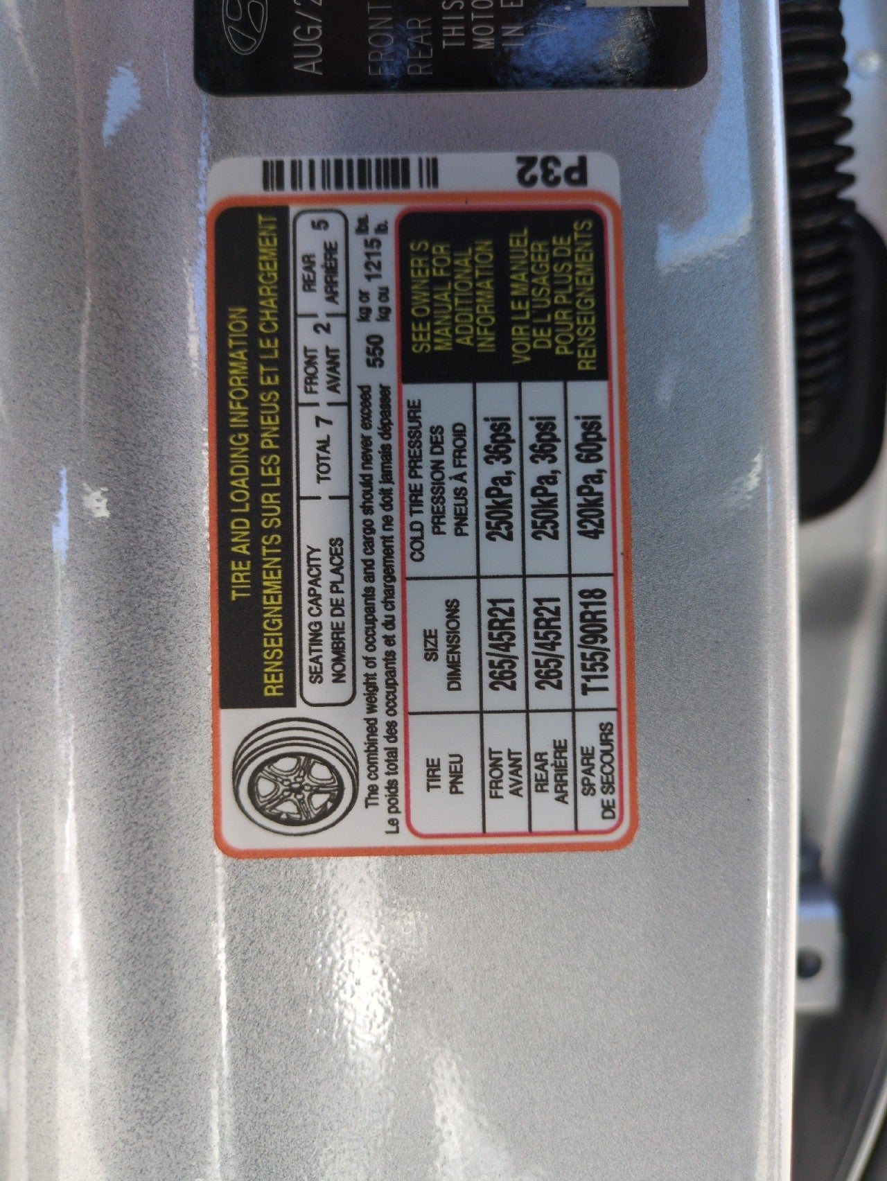 - Front Tire Size: P265/45VR21