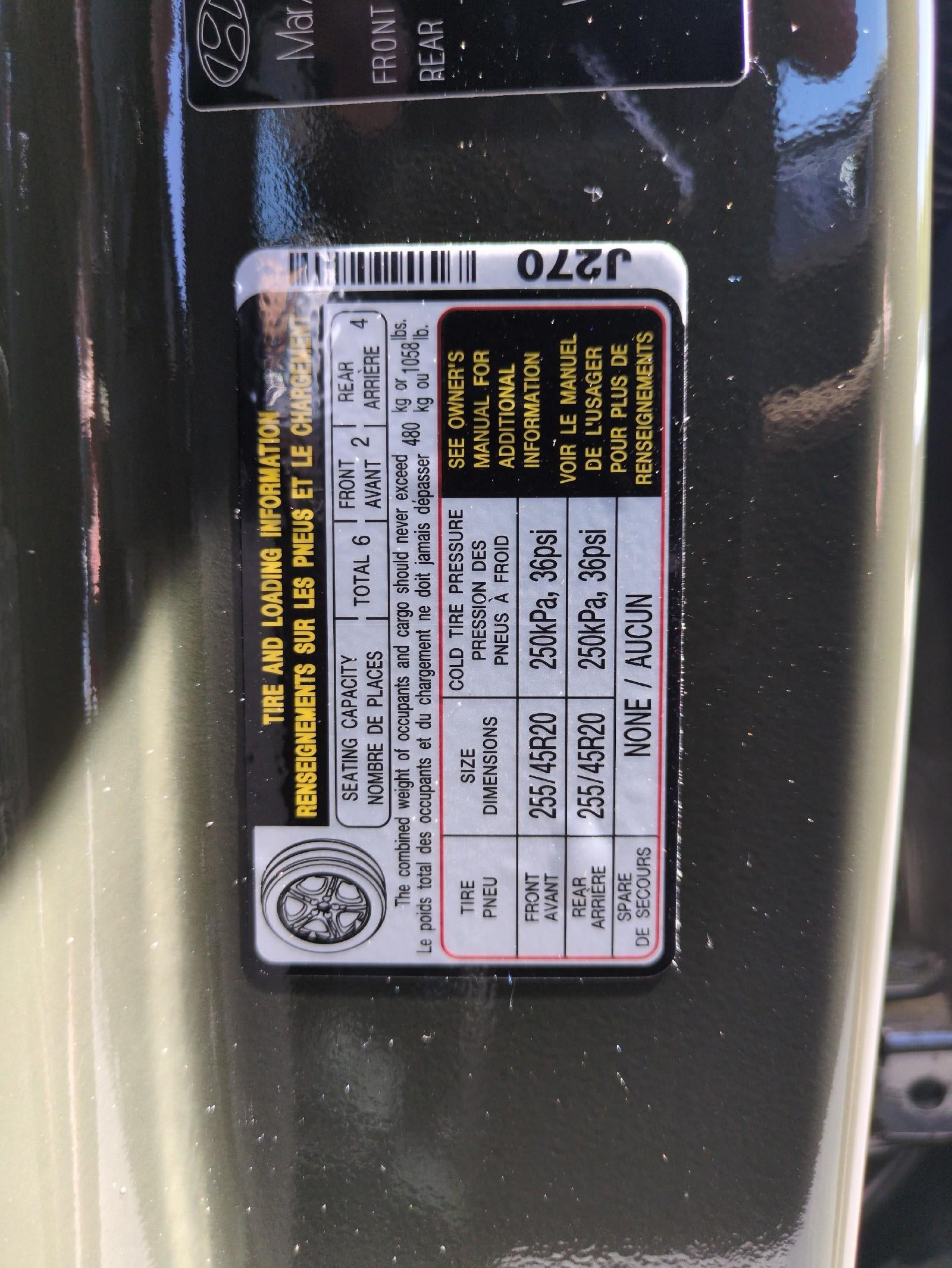 - Front Tire Size: P255/45HR20