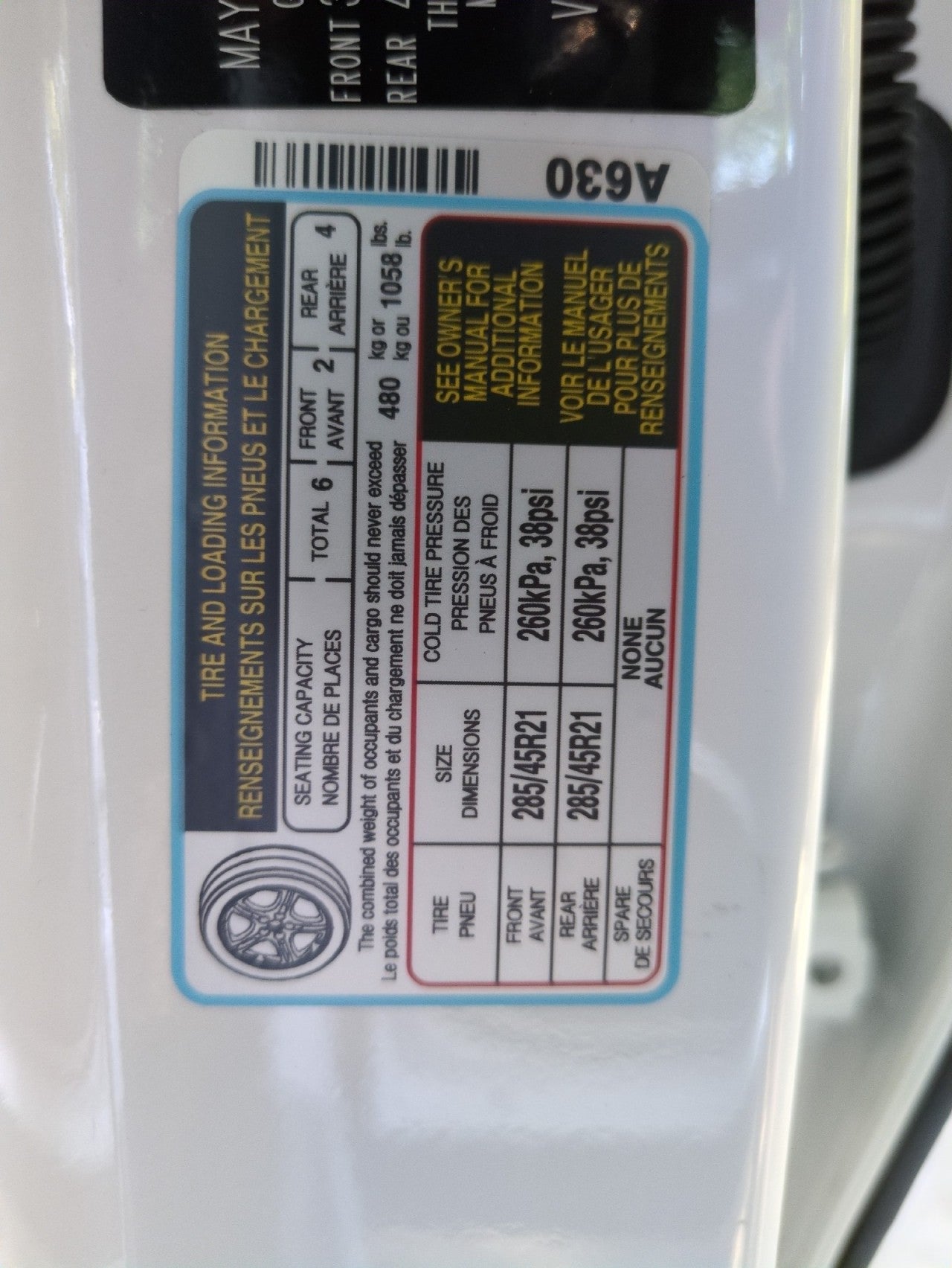 - Front Tire Size: P285/45HR21