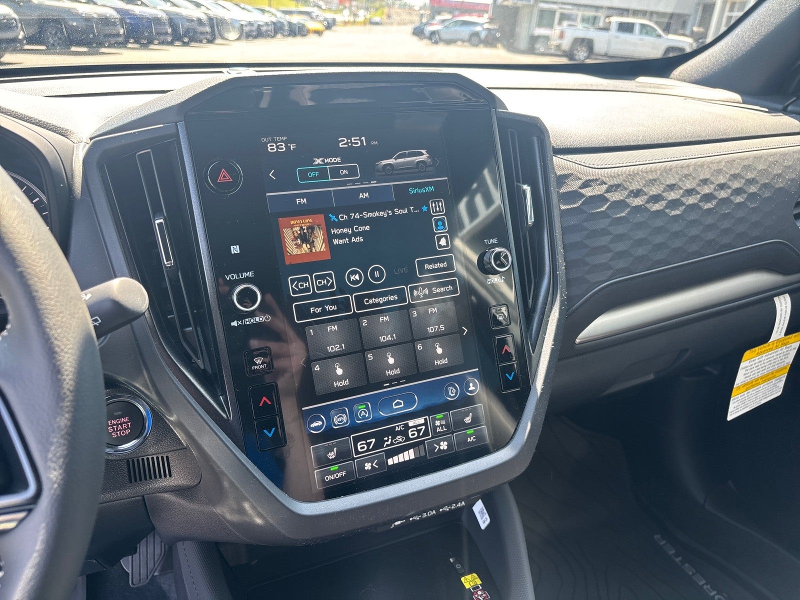 - Radio: Subaru 11.6" Multimedia Plus System -inc: valet mode, integrated center information display, AM/FM stereo HD Radio, multi-touch gesture high resolution display screen, voice activated controls, Bluetooth® audio streaming and hands-free phone connectivity w/SMS text messaging (refer to Subaru.com for cellphone compatibility), iPod control capability, smartphone integration: Android Auto and Apple CarPlay w/full screen view and wireless connection, SiriusXM satellite radio w/360L (free 4-month trial subscription included), USB and Over The Air (OTA) audio system update, steering wheel controls, 6 speakers, 3.5mm auxiliary input jack and roof mounted audio and satellite antenna
