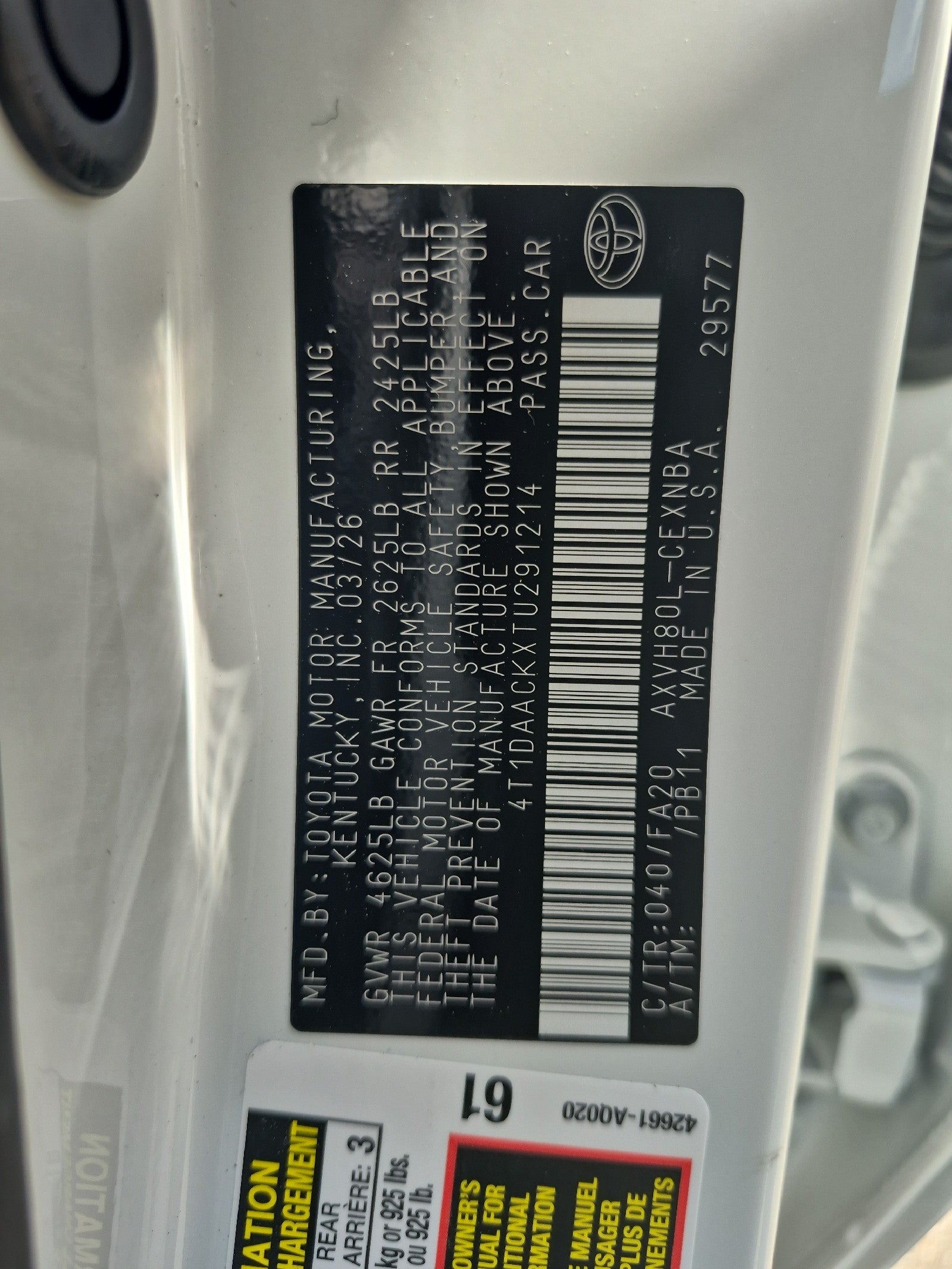 - Vehicle Name: Toyota Camry