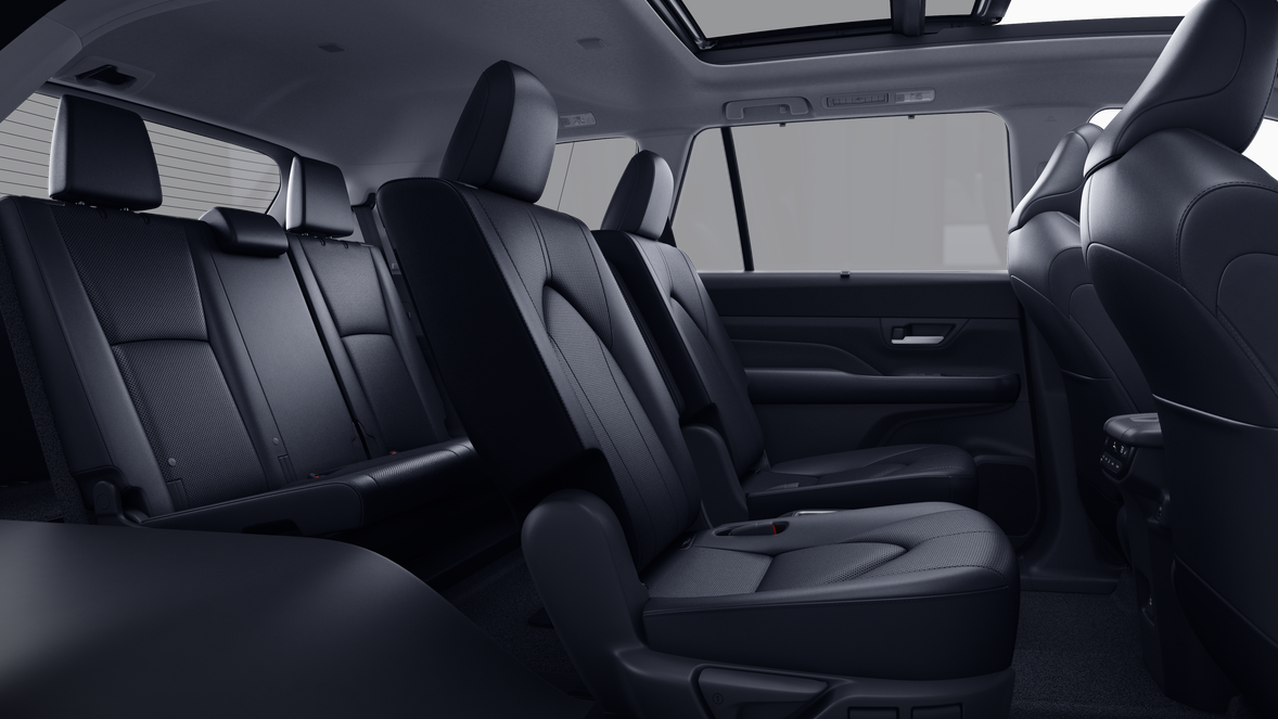 - 7-passenger seating with second-row fold-down captain's chairs and fold-down inboard armrests, adjustable headrests and two cup holders mounted on the floor; and 60/40 split, fold-down third-row seats with sliding headrests and recline function