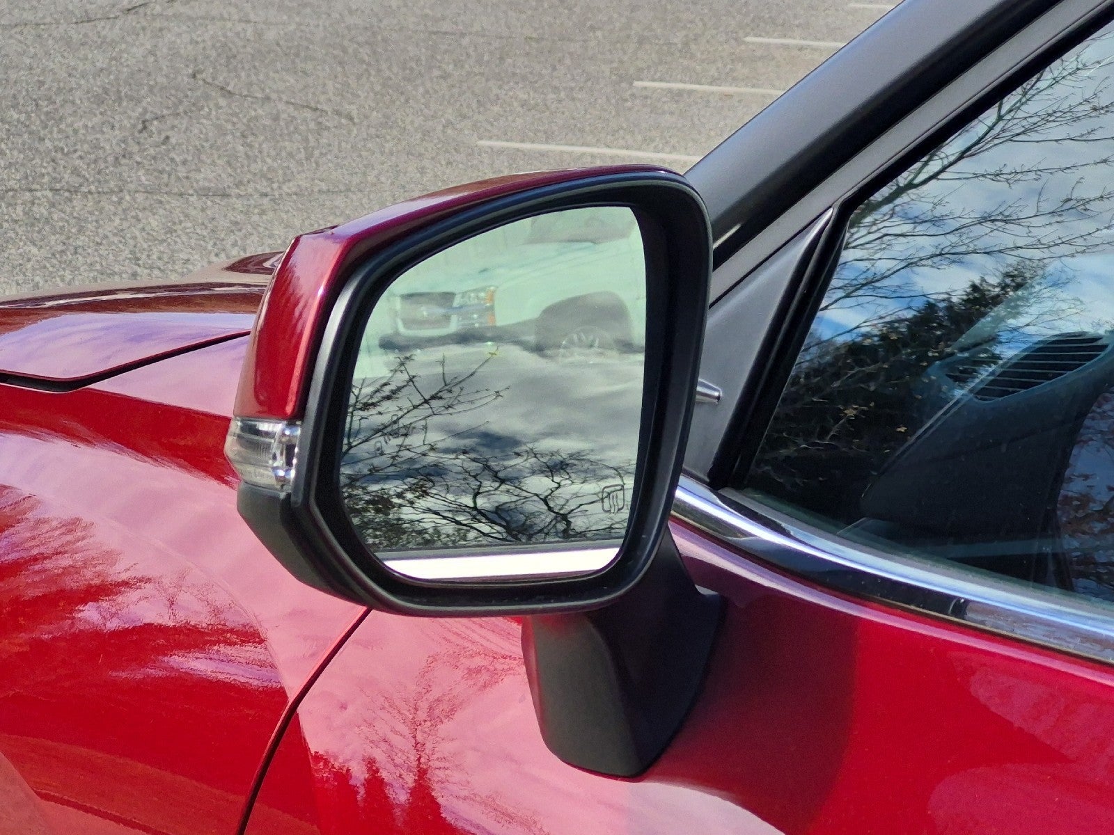 - Color-keyed heated power outside mirrors with turn signal and blind spot warning indicators, and manual folding feature