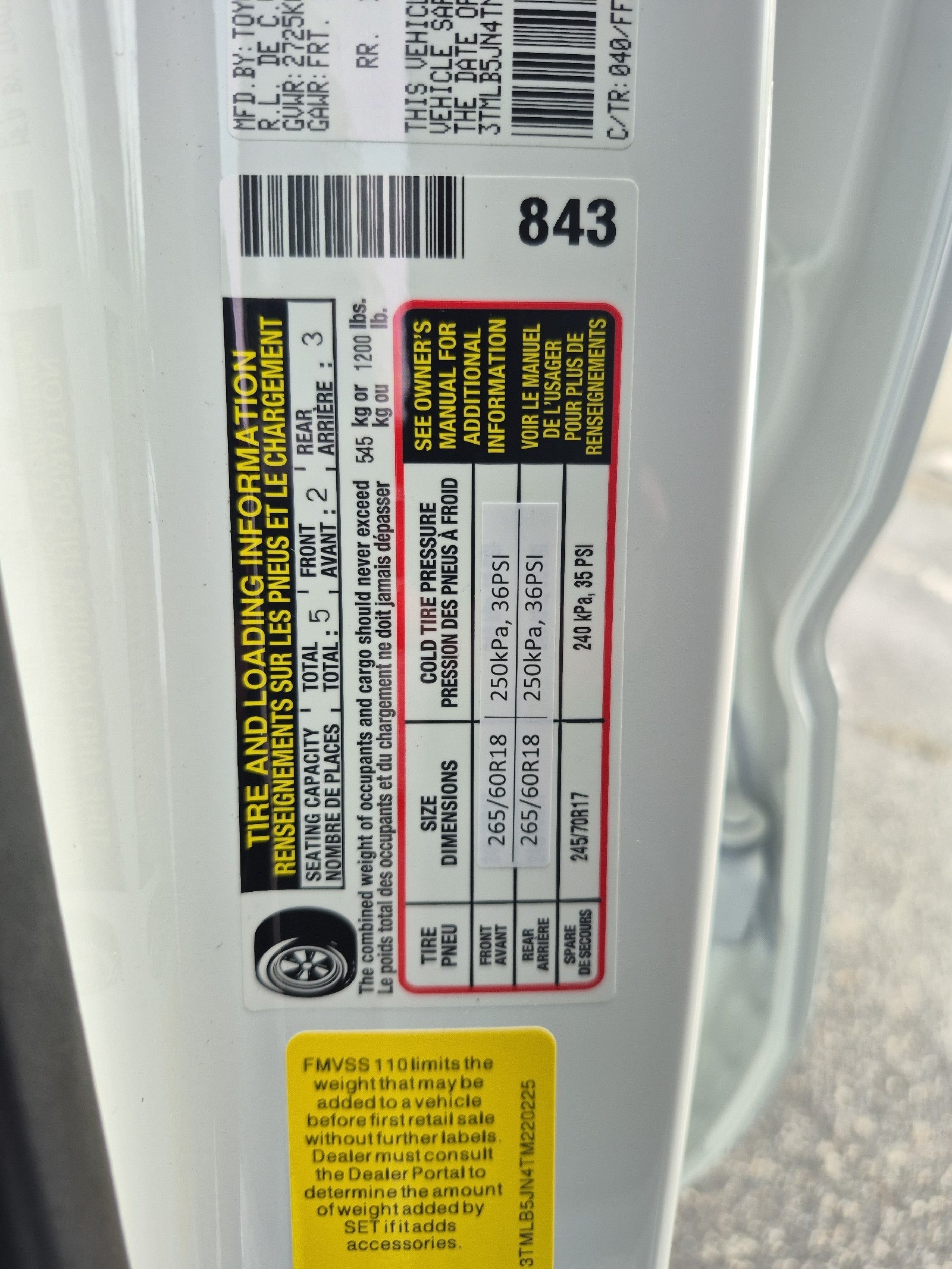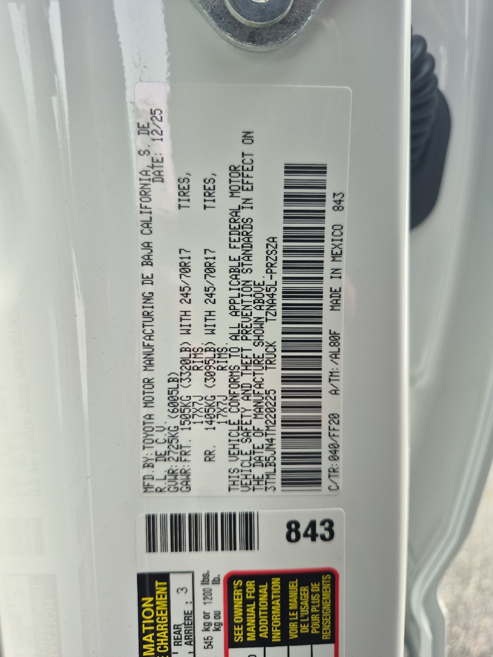- Front Tire Size: P245/70TR17