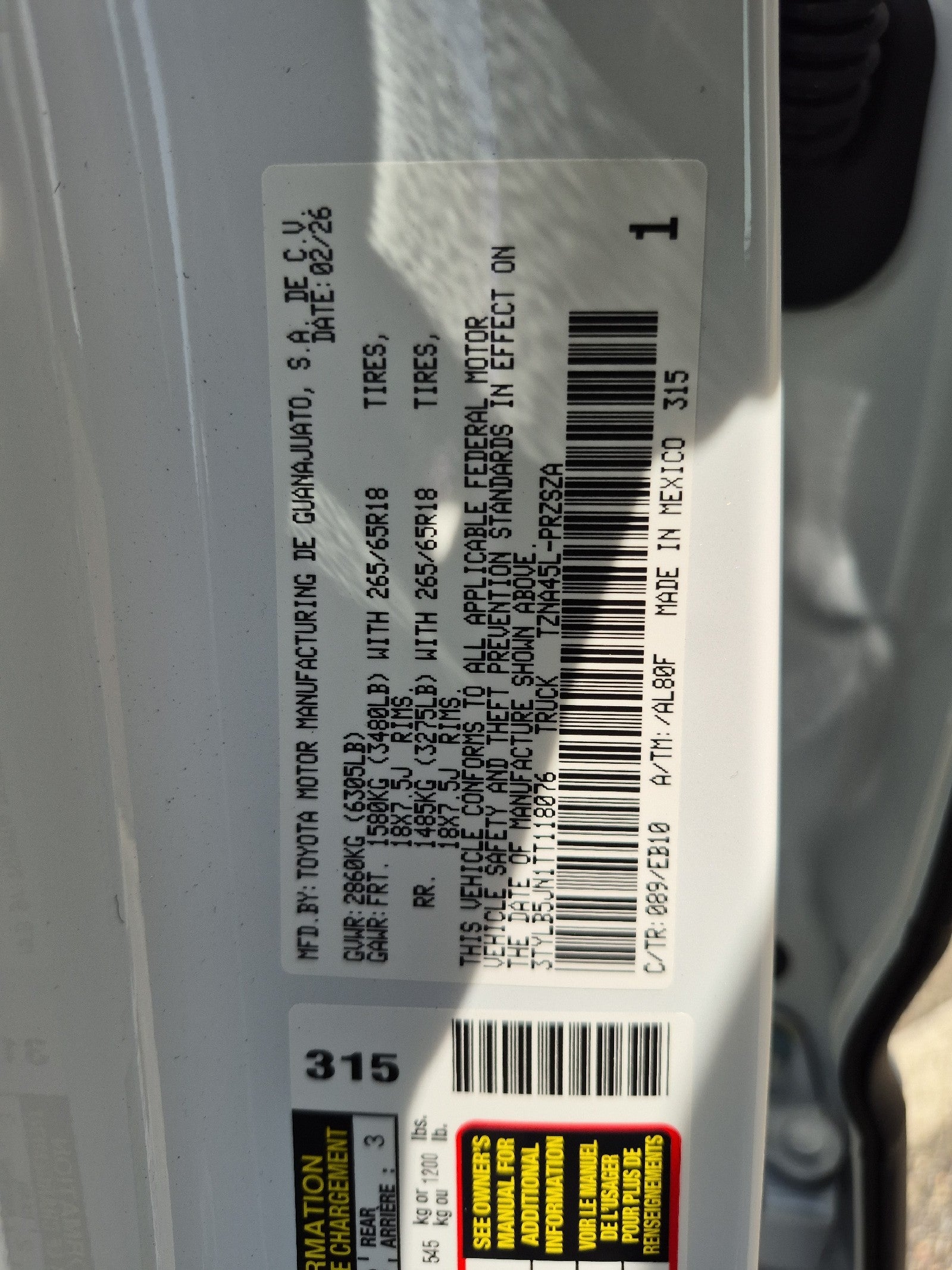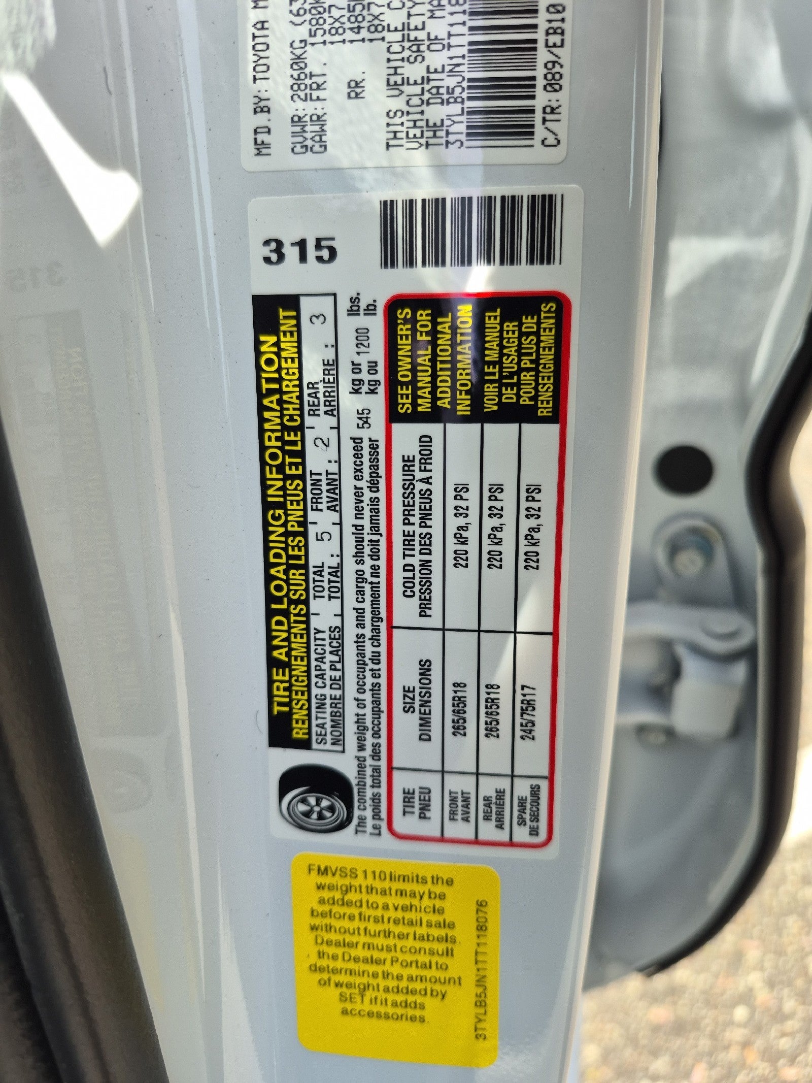 - Front Tire Size: P265/65TR18