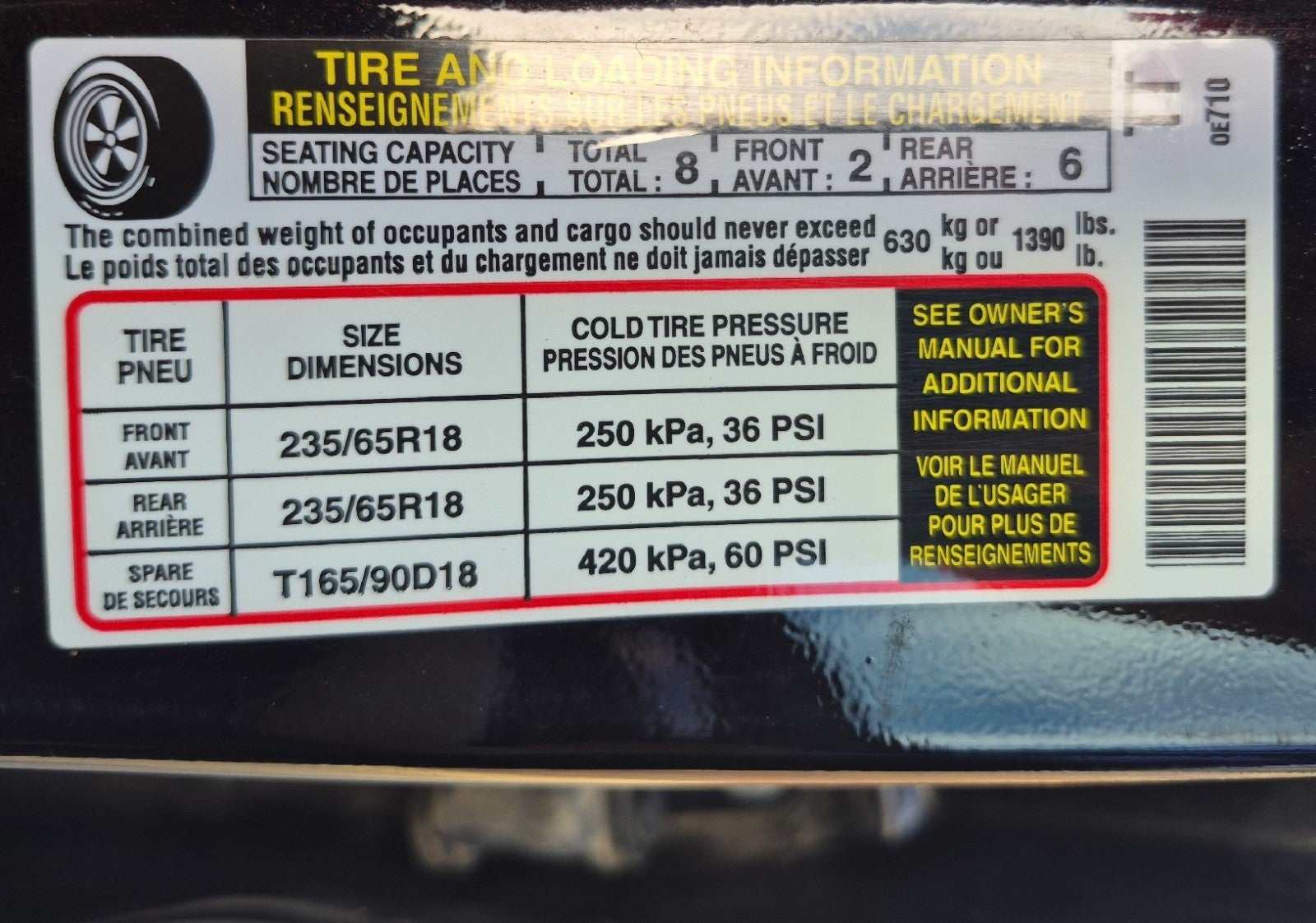 - Front Tire Size: P235/65SR18