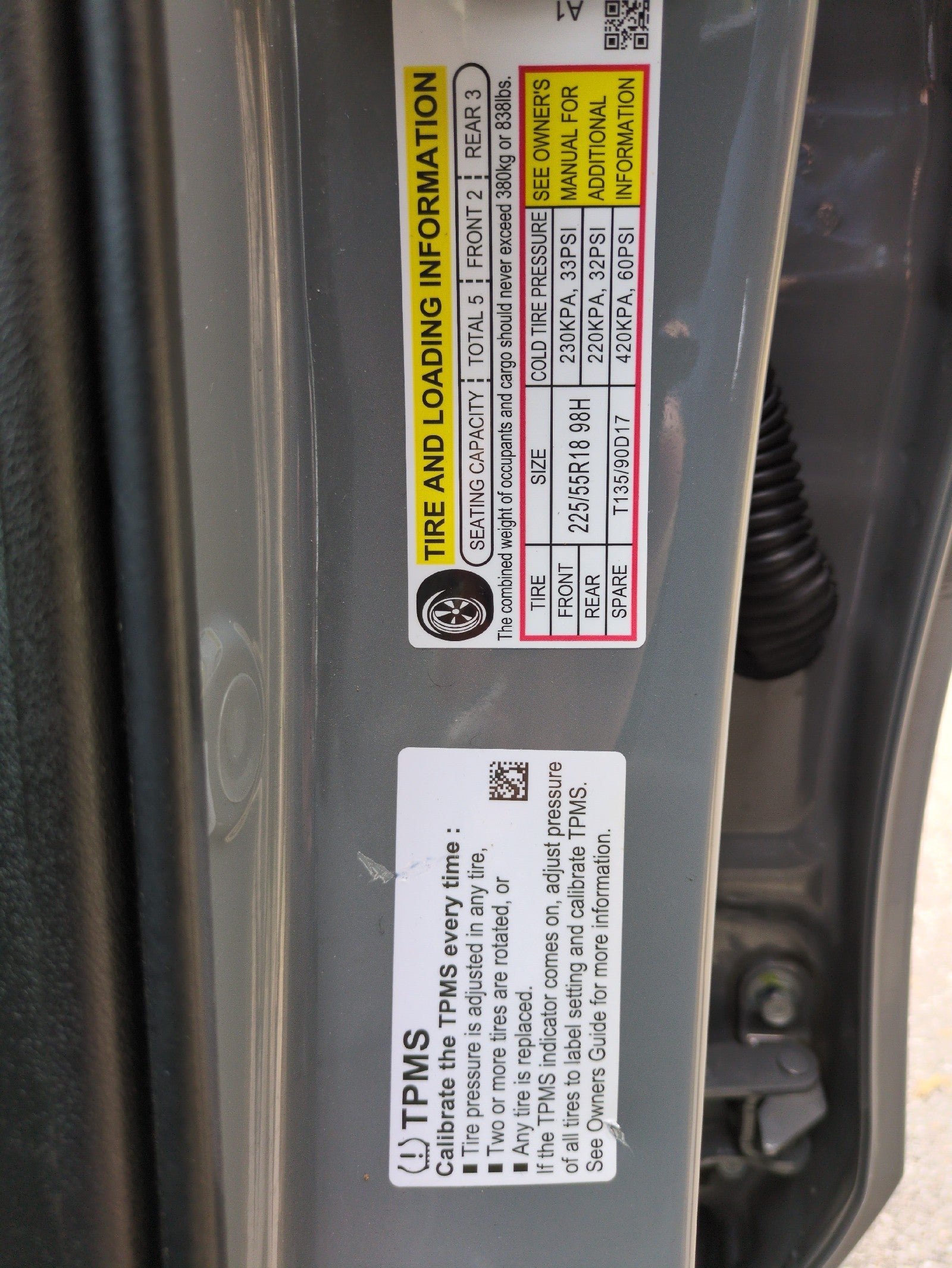- Front Tire Size: P225/55HR18